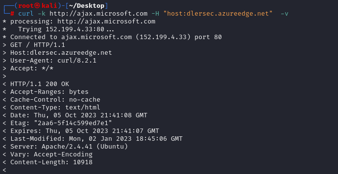 通过 HOST 头指定 bad.azureedge.net 域名,访问到 www.bad.com 内容