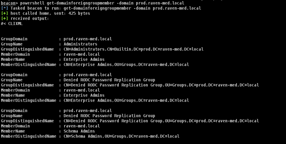 但是在 PROD 域中,我们找到了一些外部组,这是合理的,因为 PROD 和 RAVEN-MED 域是父子域。