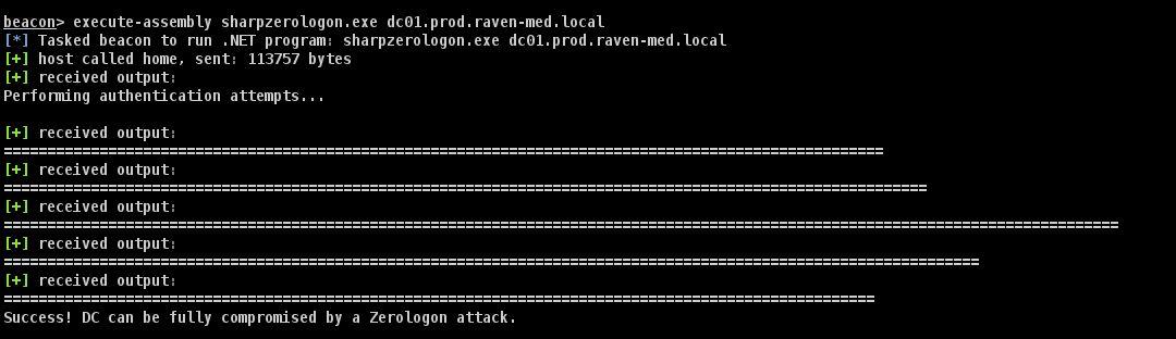 因为脆弱的密码学设计,攻击者可以模仿任何域主机,包括域控制器,以实现提权。脚本 (https://github.com/SecuraBV/CVE-2020-1472) 可用于测试目标域是否受该漏洞影响。我们可以使用 .NET 版本的工具 (https://github.com/leitosama/SharpZeroLogon/tree/main) 来测试和利用。该漏洞不需要认证或者明文凭证。