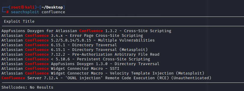 对于具有公开 exp 的漏洞,我们可以在 Kali 自带的 searchsploit 上查询,每次使用前记得及时更新。更新后的searchsploit数据与exploit-db 一致。除此之外,我们还可以在github,packetstorm (https://packetstormsecurity.com/) 等平台寻找exp。