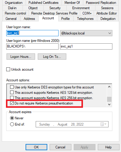 如果域用户不需要 Kerberos 预身份验证,我们可以为用户请求 AS-REP 并从部分回复中检索 krb5asrep 哈希。 希望我们可以破解哈希并获得明文密码。
