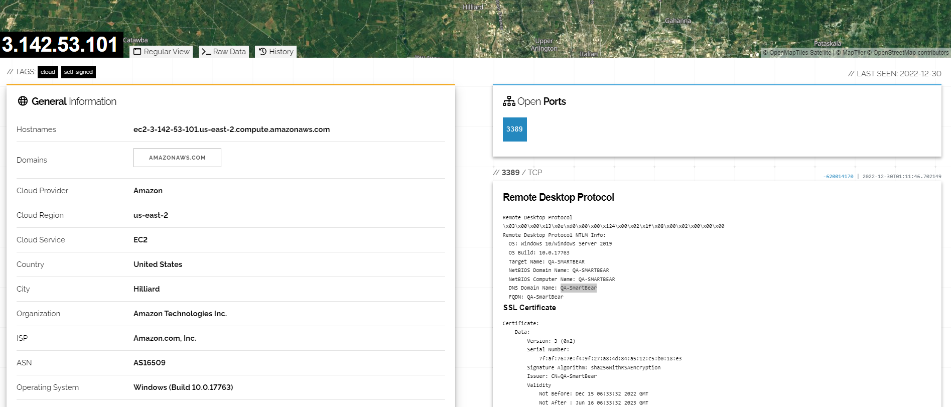 我们还在 Shodan 上发现了 SmartBear 的一台开启了 RDP 的服务器, 从证书来看, 是 QA 部门的. 对公网开启 RDP 协议, 会导致攻击者进行密码攻击, 以及使用历史 RDP 的 CVE 漏洞, 例如 BlueKeep 进行攻击.