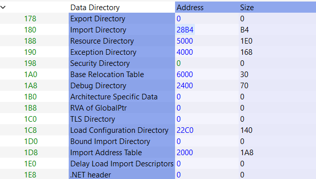 IMAGE_DATA_DIRECTORY DataDirectory[IMAGE_NUMBEROF_DIRECTORY_ENTRIES];