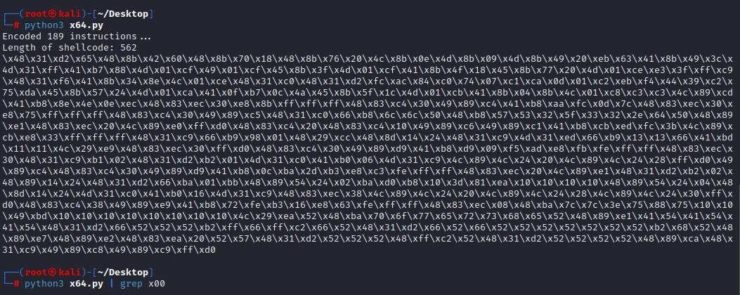 现在不仅没有 0x00 字符,而且仅有 562 字节,十分接近 Msfvenom 生成的了。