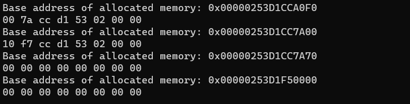 printf("Base address of allocated memory: 0x%p\n", pAddress4);