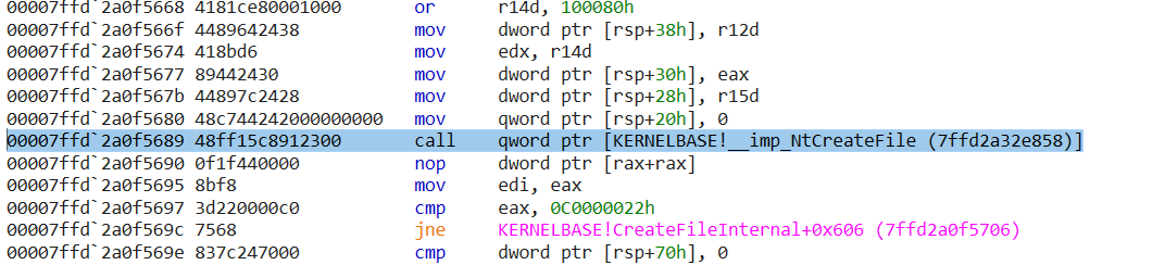 00007ffd`2ba60760 ff25da2c0600 jmp qword ptr [KERNEL32!_imp_CreateFileW (00007ffd`2bac3440)] ds:00007ffd`2bac3440={KERNELBASE!CreateFileW (00007ffd`2a0f4f80)}